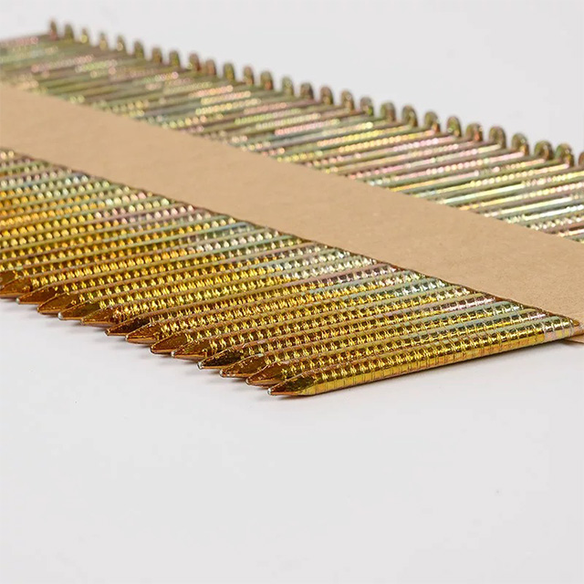 Firstly, based on the thickness and hardness of the material to be fixed, select the corresponding size of 34 degree paper for nail arrangement; Next, fully insert the paper row nails into the compatible 34 degree nail gun magazine, ensuring that the ribbon is in contact with the nail gun nail supply structure; Then align the materials to be fastened and aim the nail gun barrel at the target position; Finally, pull the trigger and operate at a constant speed to avoid excessive force. At the same time, pay attention to avoiding the edges of the material to prevent cracking. If it is an outdoor scene, prioritize using galvanized nail bodies to prevent rust.