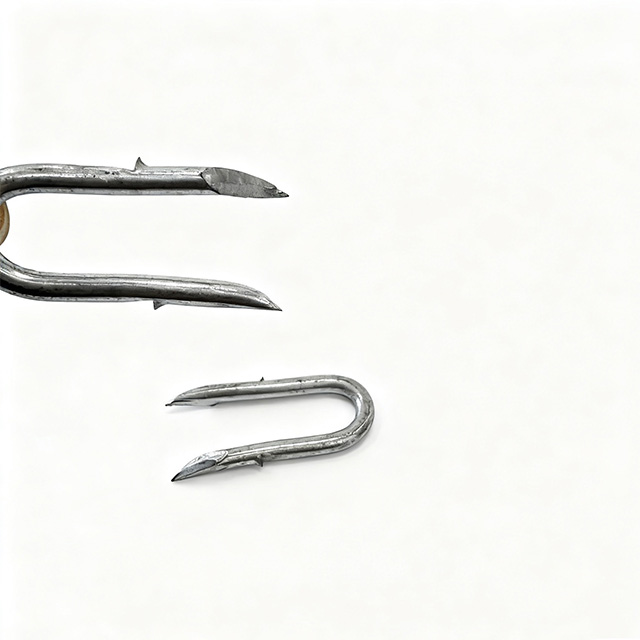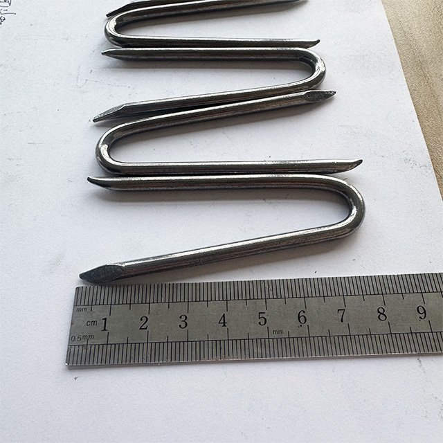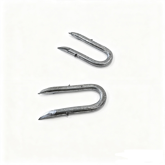 3. Nail in: Use a hammer to strike the curved top of the U-shaped nail, gradually tapping the double nail tips into the fixed substrate (such as wood or soil) until the barb is completely embedded and the nail body is in contact with the fixed object.