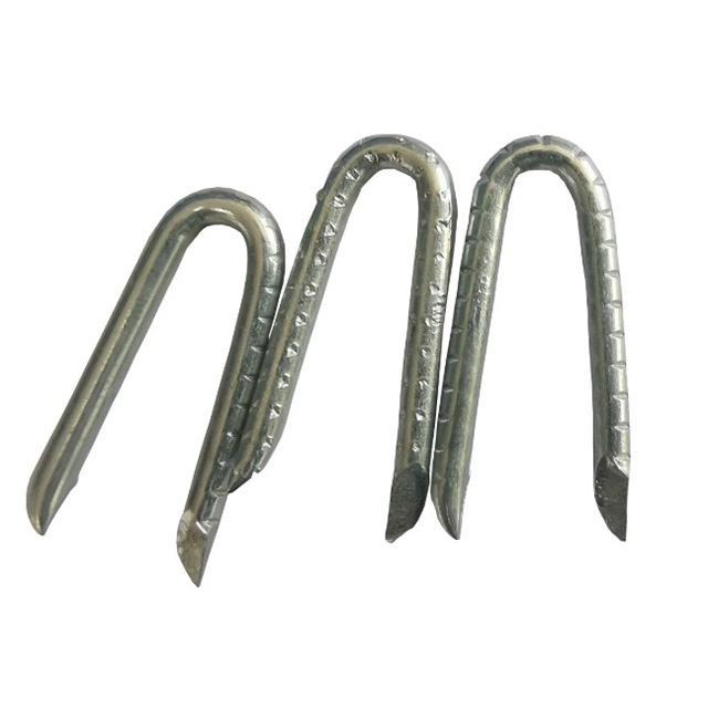 Hot dip galvanized U-shaped nail with spikes is a metal fastening accessory with a U-shaped structure, a nail body with spikes, and hot-dip galvanized anti rust treatment. The core material is carbon steel, which is formed with an anti rust layer through hot-dip galvanizing process. The nail body has reverse spikes on both sides, combining the characteristics of "U-shaped wrapping fixation" and "barbed anti detachment". It is a specialized fastening connector for outdoor and heavy-duty scenarios.
